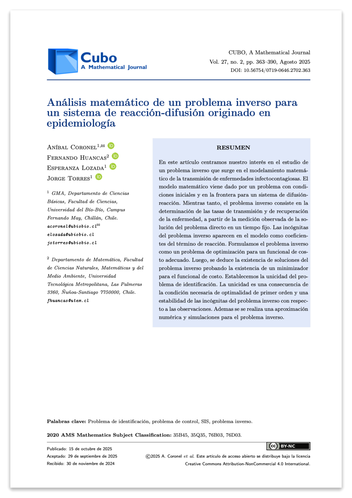 Análisis matemático de un problema inverso para un sistema de reacción-difusión originado en epidemiología
