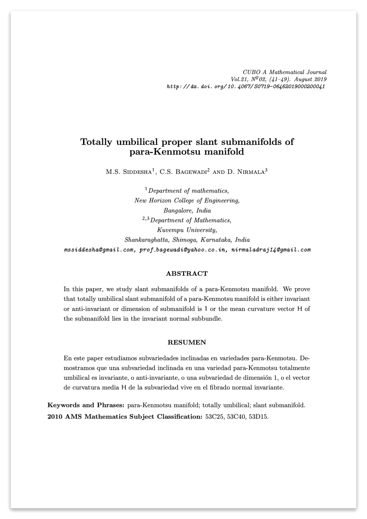 M.S. Siddesha, C.S. Bagewadi, D. Nirmala