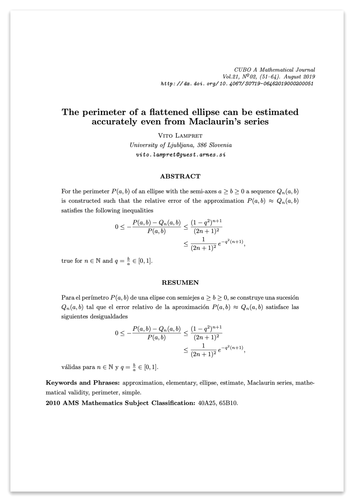 The perimeter of a flattened ellipse can be estimated accurately even from Maclaurin‘s series